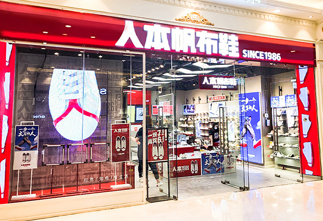 2012年人本商標被行政認定為中國馳名商標,迄今線下門店已經突破1000家,每年賣出帆布鞋1000多萬雙!